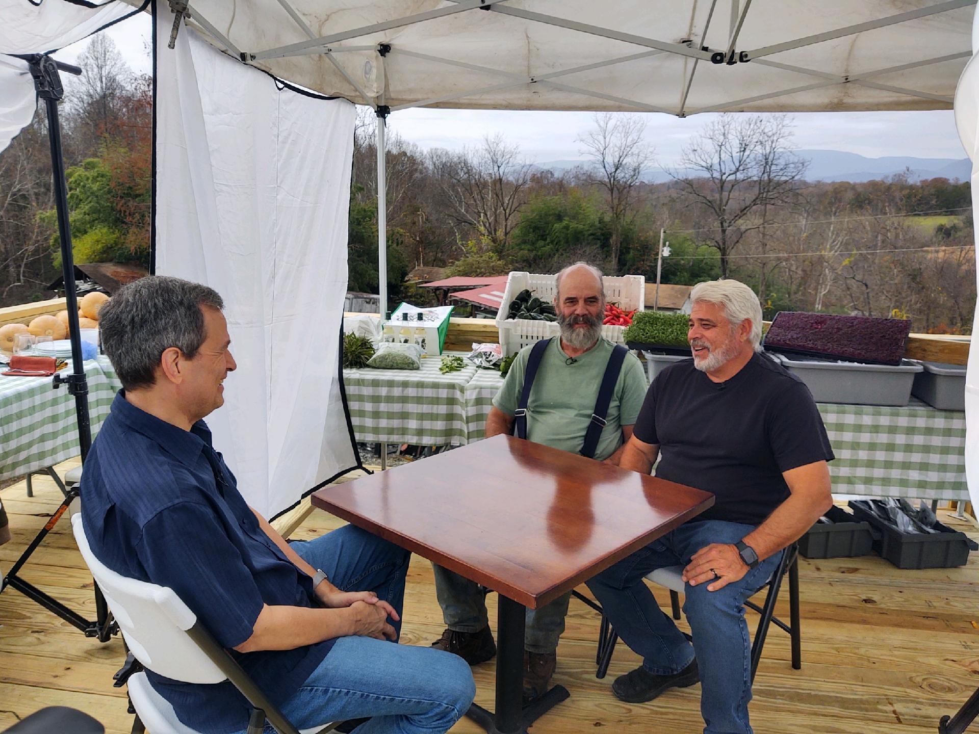 The week of November 10 we built an elevated set with the help of David Clark of Richmond Rebuilders to act as a stage for the crew to film Chef Craig Hartman and Michael and the microgreens overlooking the farm with a view toward the mountains of Swift Run Gap