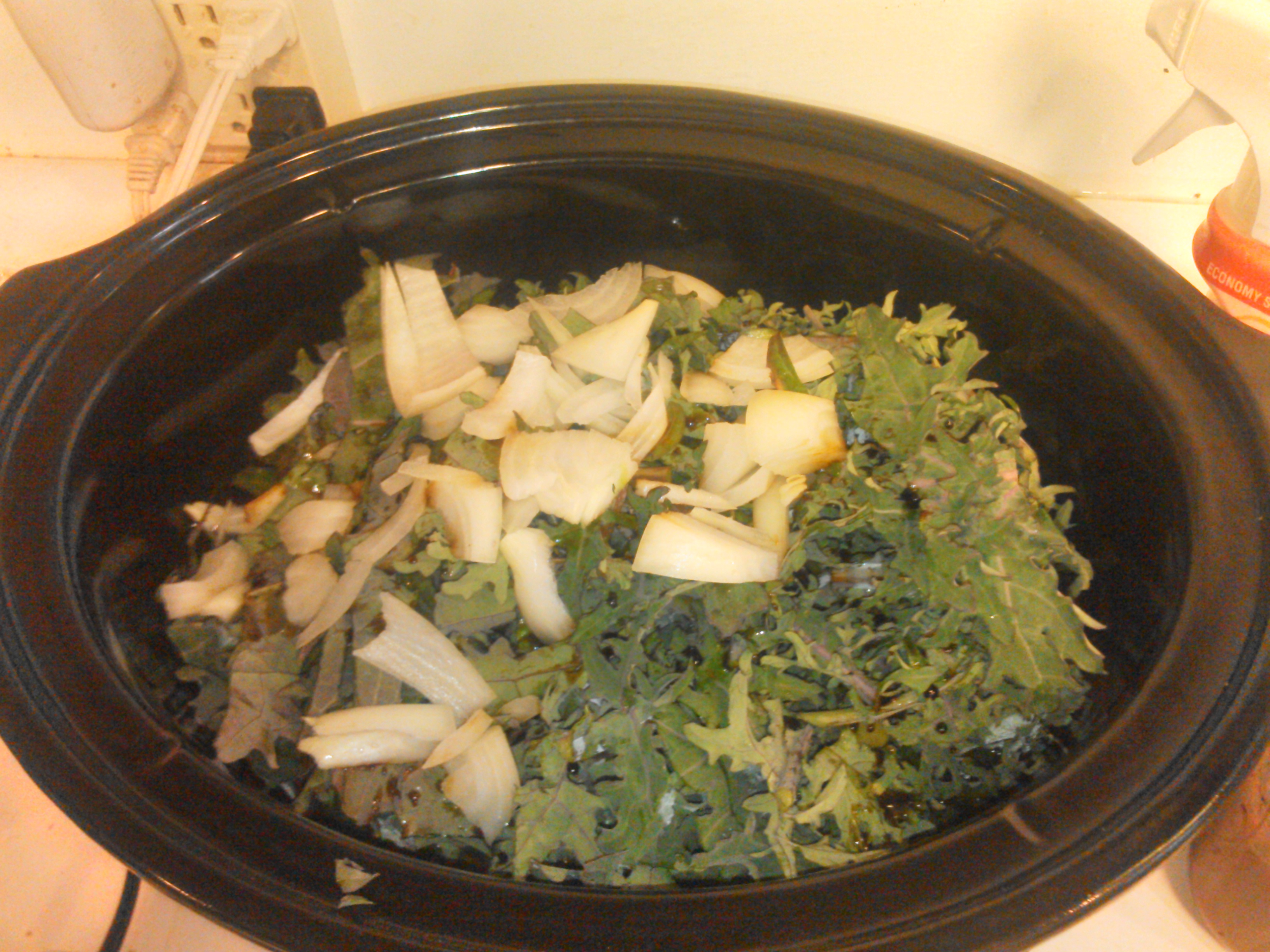 My favorite winter greens are any kind of kale collards chard etc cooked in the crockpot with some onion soy and rice and a bit of chicken stock or soy sauce – if you eat meat cubed ham or cooked and crumbled bacon is fine addition. A couple to 3 hours cooking in the crockpot and it’s ready to eat for any meal or snack. A good variation is to make it soup like by addition of broth or even putting the sweet potatoes and squash in peeled and cubed – add an hour cooking if the potatoes or squash are raw.