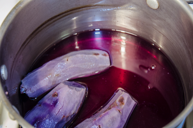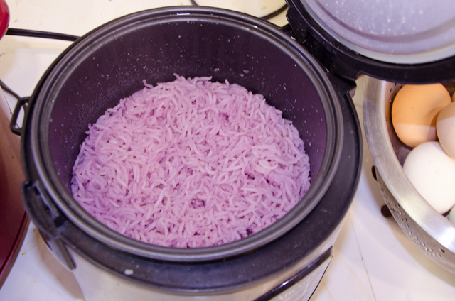 Purple Sweet potatoes boiled always seem to make the most tender sweet potatoes to us – Plus if you use the purple water to make rice and you get natural coloring for beautiful purple rice!