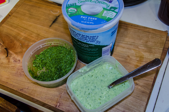 A healthy salad dressing is easily made using fat free yogurt and a spoon of our fresh pesto. Just mix well and you have a creamy instant salad dressing. Watercress Pesto has a tiny bit of spicy bite from the watercress and that really compliments the tart yogurt on salads. Try Pesto on pasta with just a bit of olive oil. Pesto is a good snack on crackers as well!